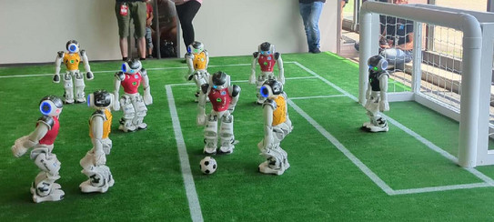 In this setting, robots perceive only a local, limited view of the field through sensors and cameras; fragmented observations must be fused continuously into a consistent internal world model. This world model enables localization of the ball, teammates, and opponents, and it supports strategies and motor actions such as bipedal walking, position changes, and goal shots.